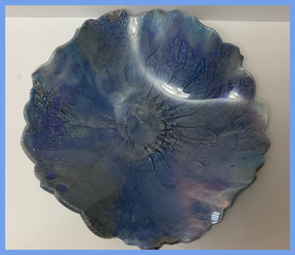 Made with resin this gold, black, purple and white irregular shaped tray with gold handles measures L 33.2cm W 22.5cm