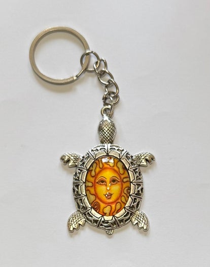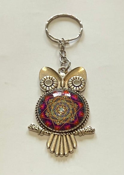 Owl keyring with pattered cabchon belly. The owls eyes glow in the dark if gained enough light during the day