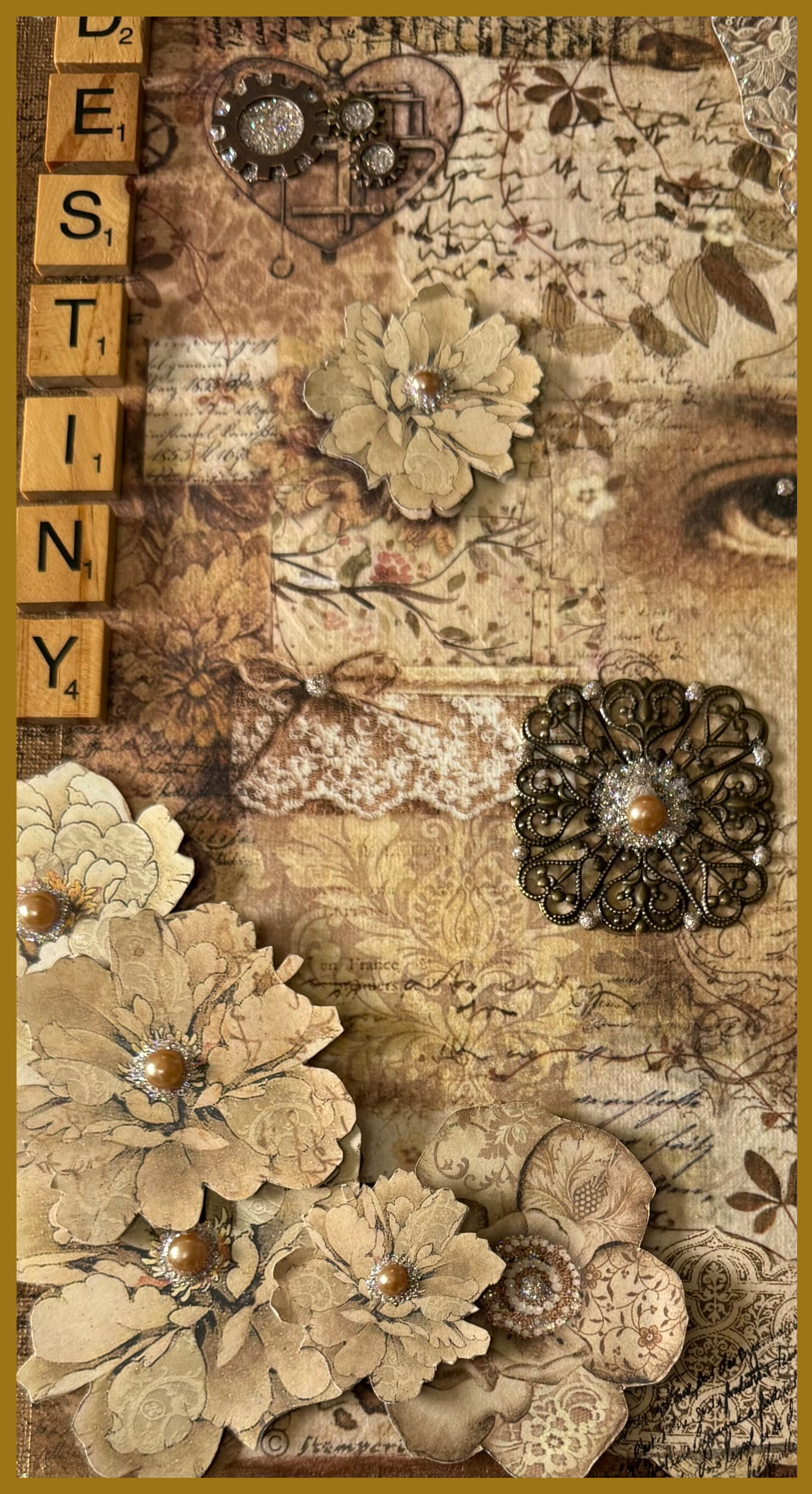 A4 decoupaged vintage style canvas board.