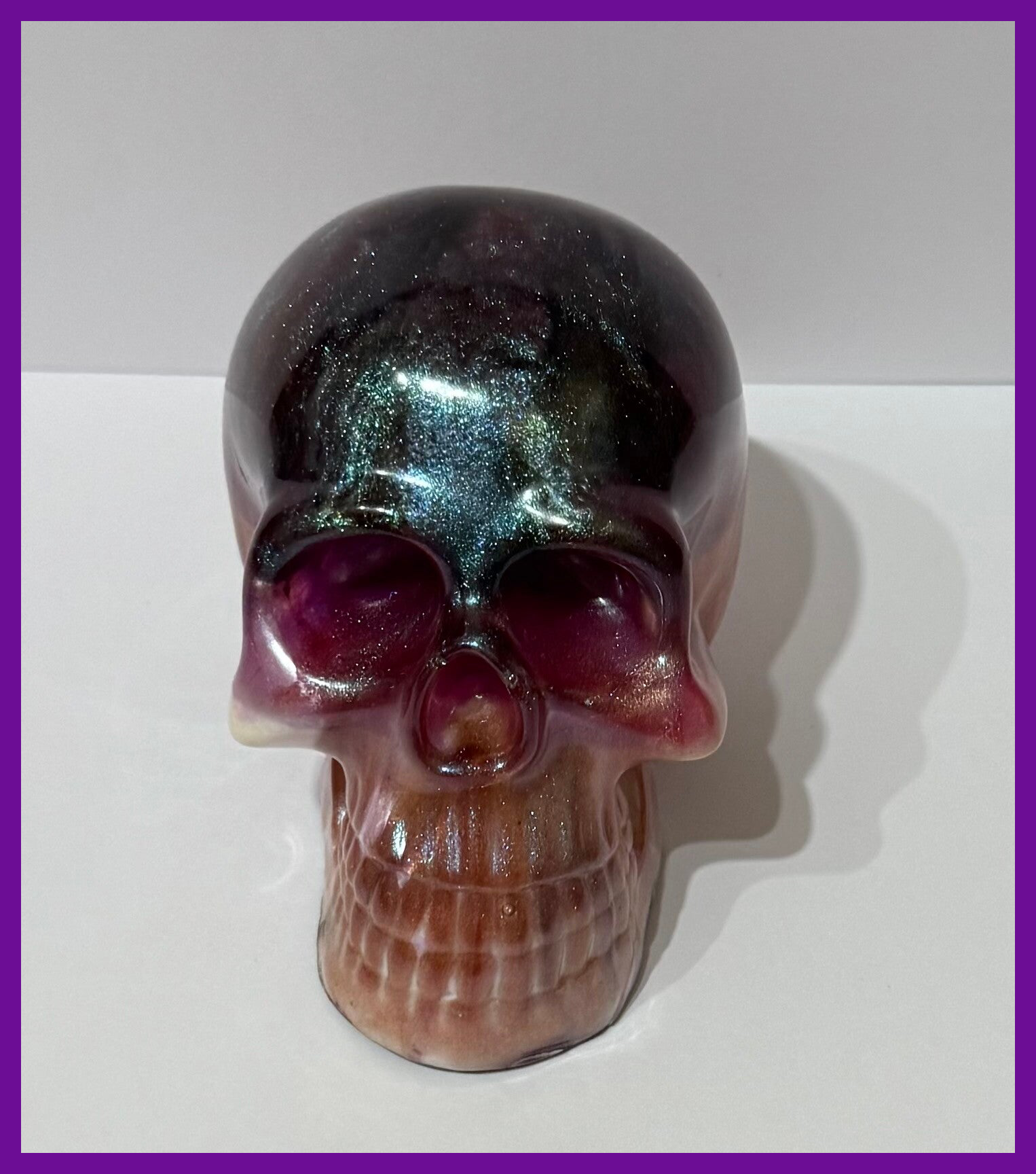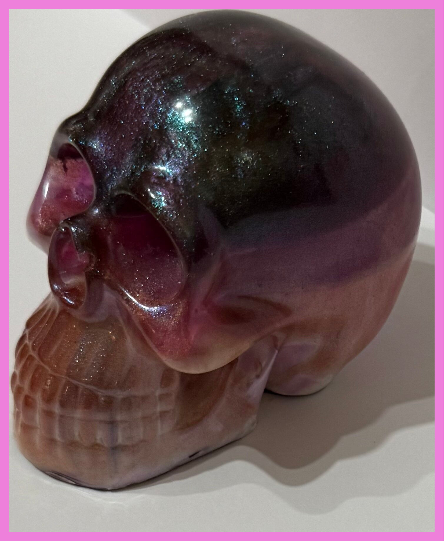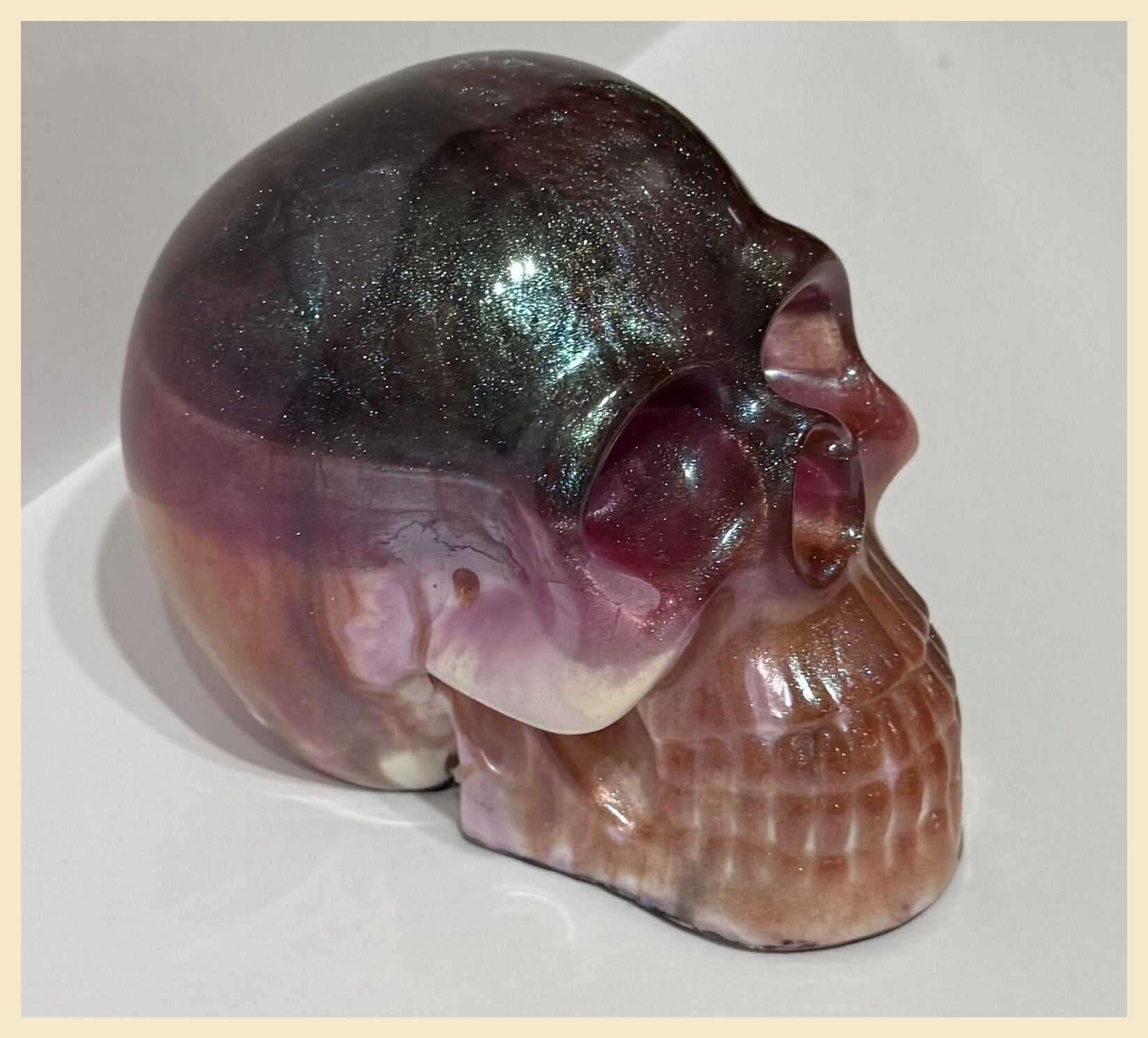 Mixture of shimmery pinks, purples, cream and burgundy. Height roughly 9.5cm length 10cm and width is roughly 8cm